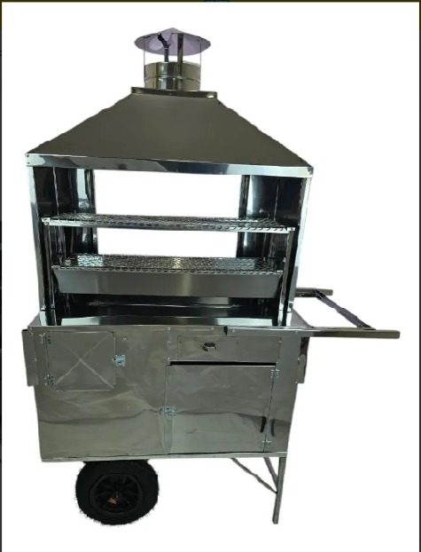 * Vidro de 65x42cm na parte de trás da churrasqueira visualizando os espetos de qualquer lado do carrinho